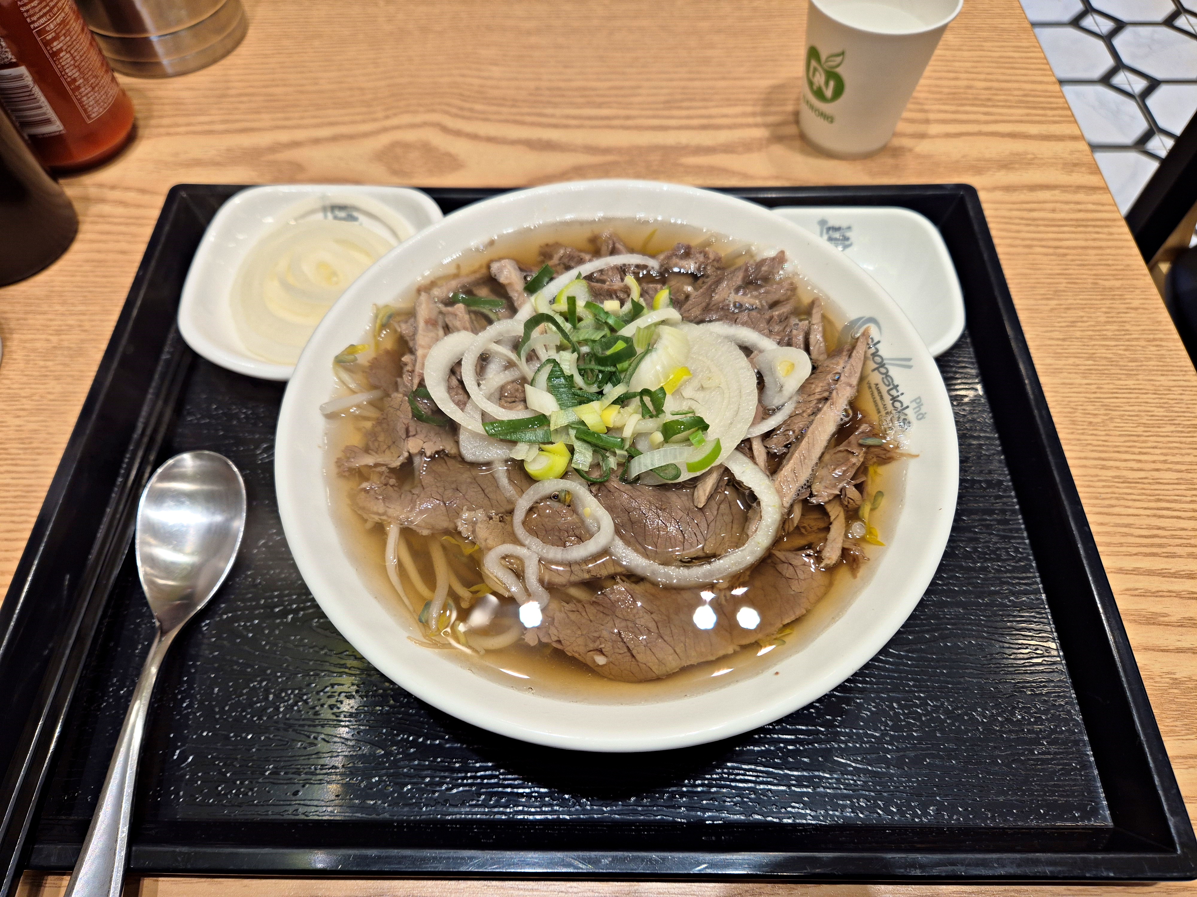 양지 차돌 쌀국수 고기추가(13천원). 쌀국수는 고기가 너무 적게 나와서 이렇게 고기 추가를 해야 좀 영양밸런스가 맞는다고 생각한다.