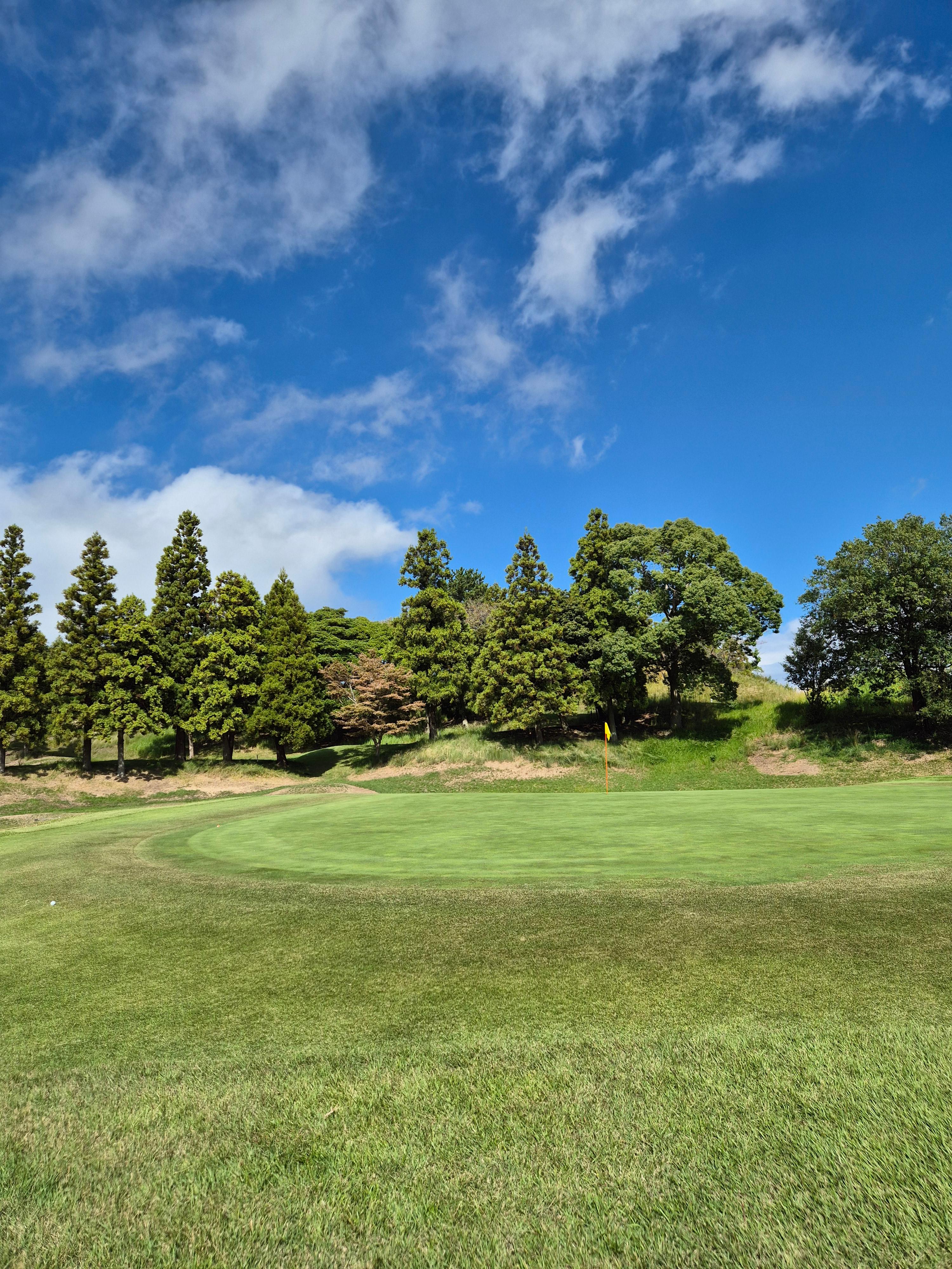 웨스트 10번홀. 대략 450~460m 정도 되는 파5홀인데, 인코스로 시작하면 첫홀부터 롱홀이라 좀 부담스럽다. 보다시피 러프쪽 잔디가 꽤나 죽어있는데 우리나라도 올해 여름이 폭염이었듯 일본도 폭염이었어서 잔디들이 많이 죽었다고 들었다. 아 이때는 10월초였는데 이때만 해도 온도는 괜찮은데 햇살이 너무 셌다. 그리고 보다시피 러프의 잔디길이가 꽤나 긴 편이라 페어웨이를 지켜주는 것이 좋다.