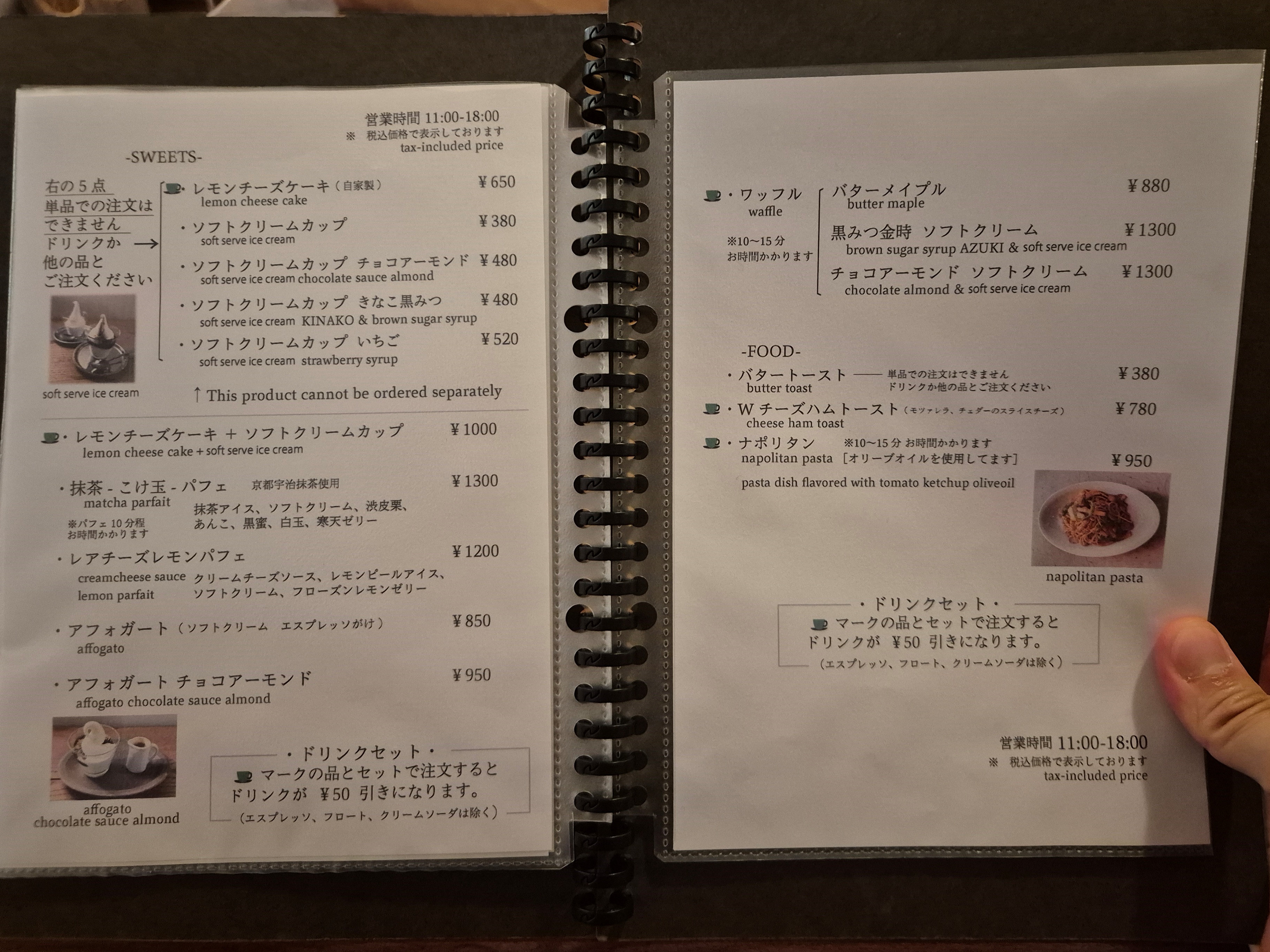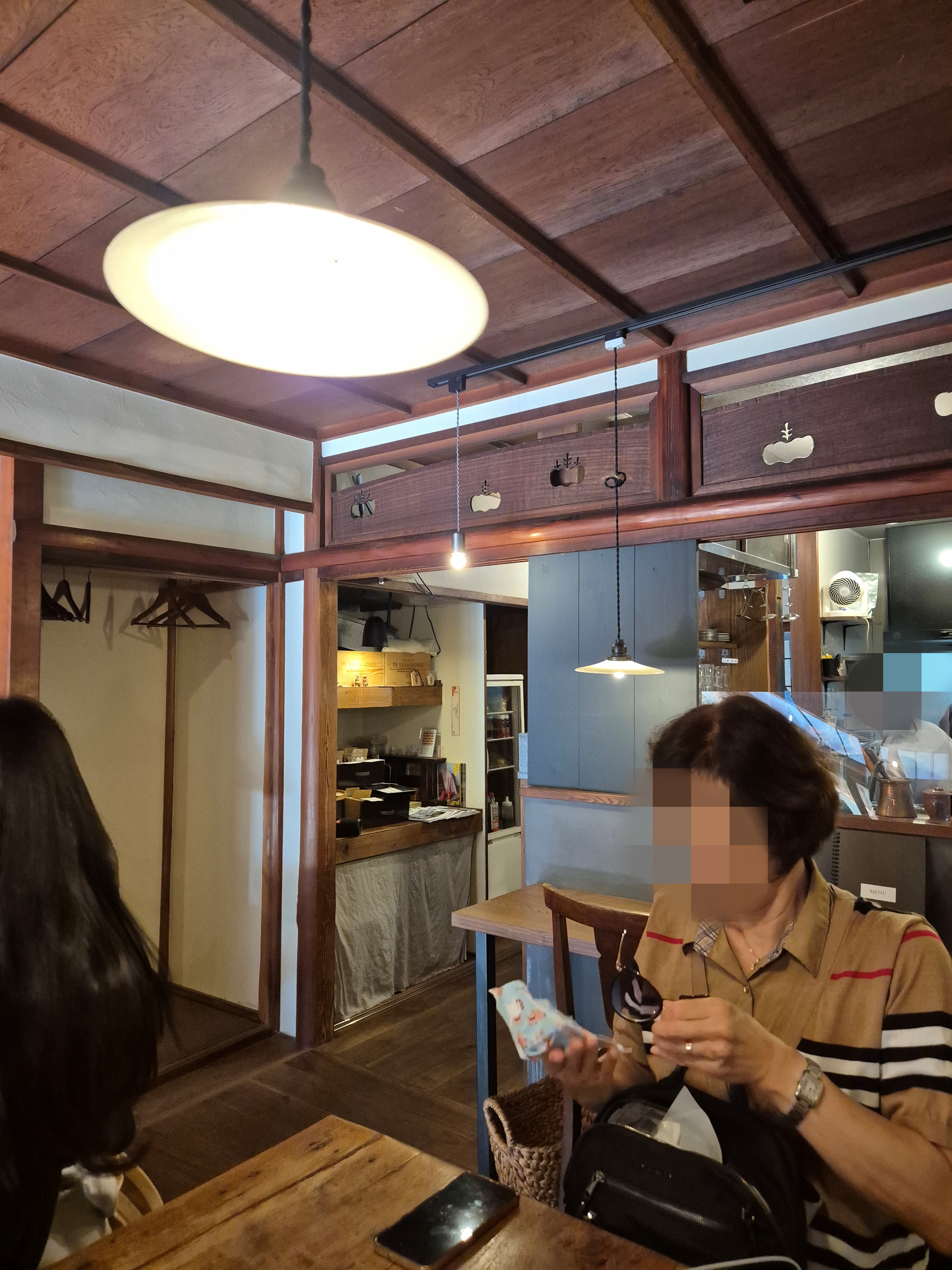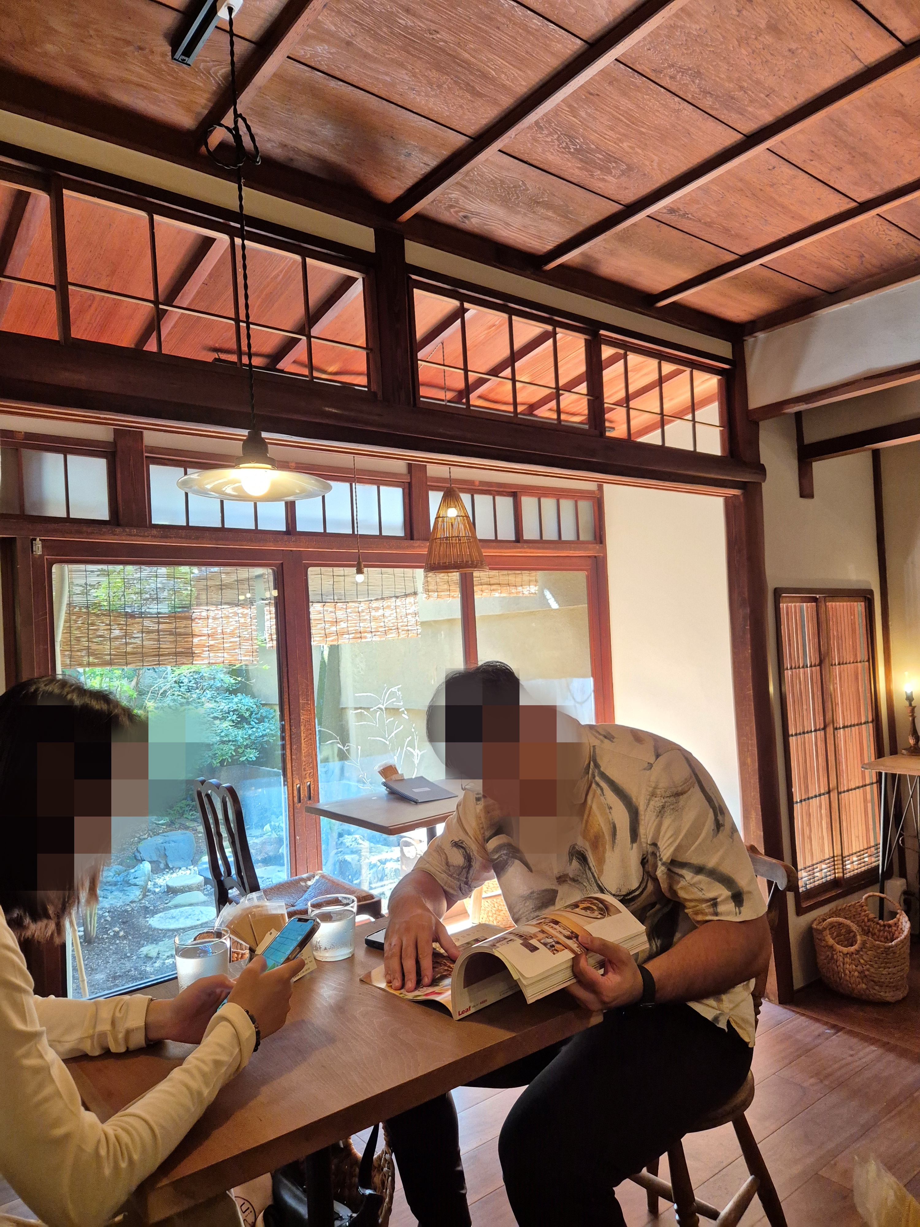 내부는 이런 느낌. 뭔가 교토 근대 가옥을 개량해서 만든 카페 같았음. 고즈넉하고 예쁘게 잘 해놨더라. 그래서 사진을 전문적으로 찍으러 오시는 분들도 좀 있었음. 옆에 아저씨가 나폴리탄 주문해서 드시던데 냄새가 너무 자극적이라 군침돌았다.
