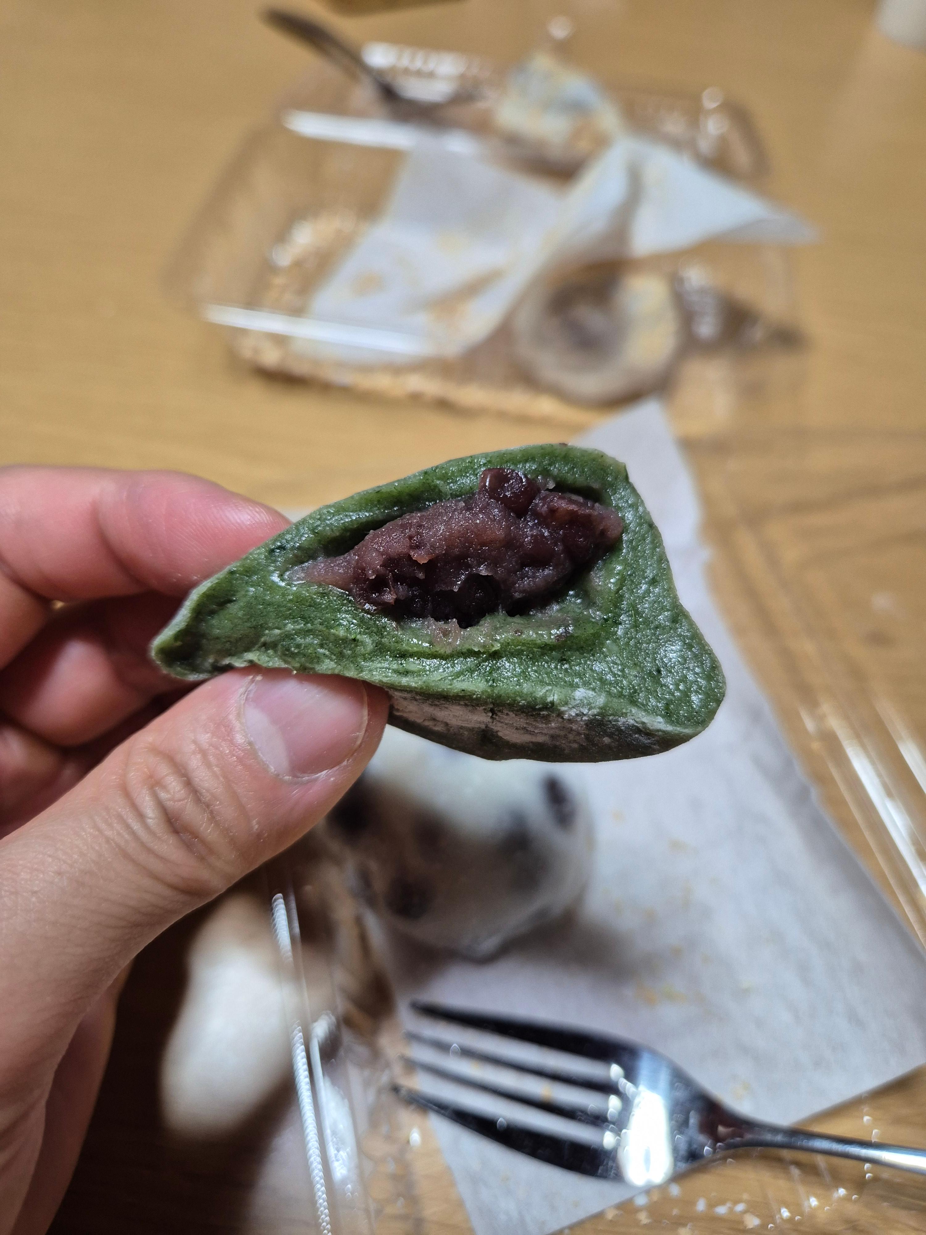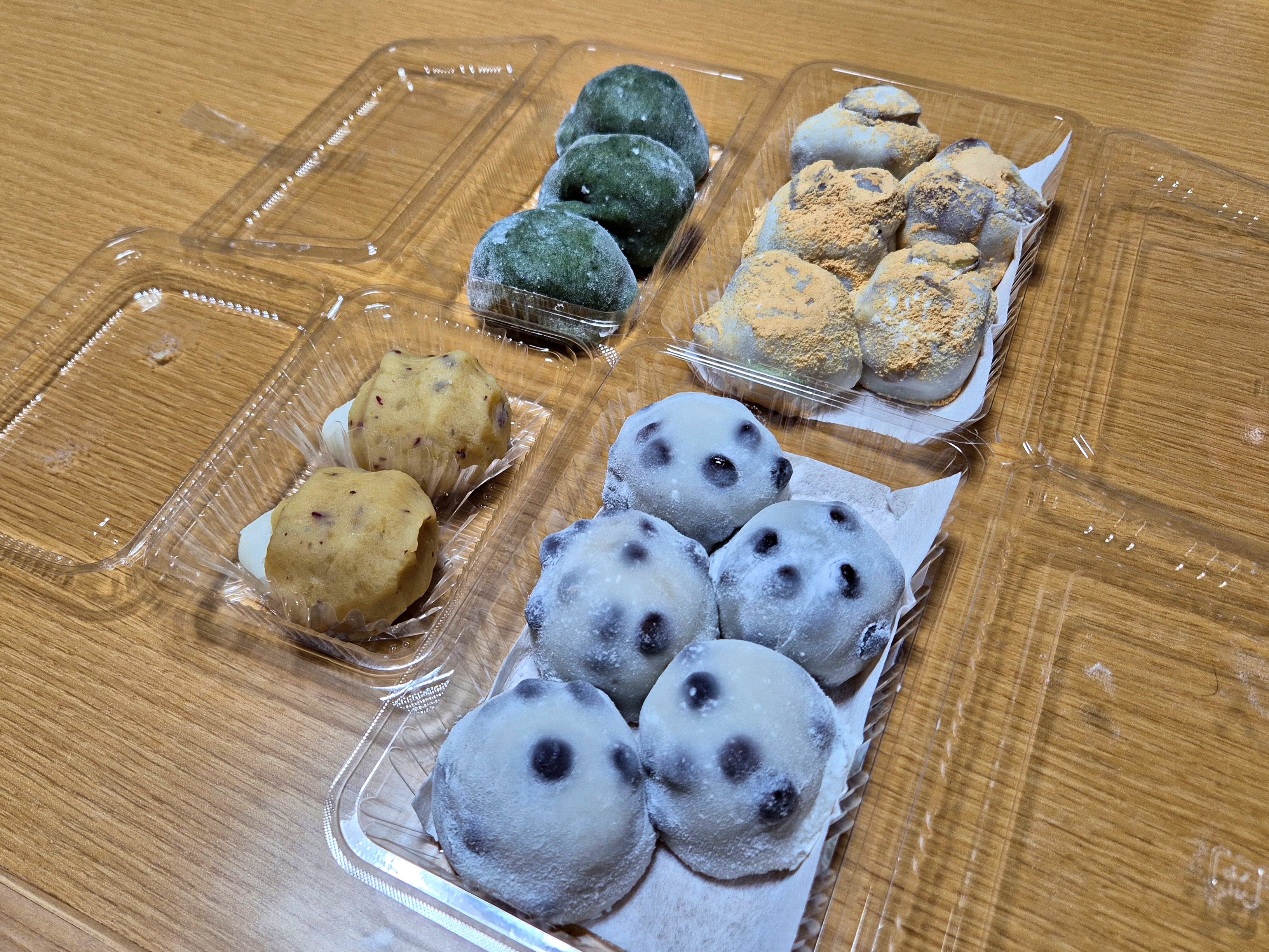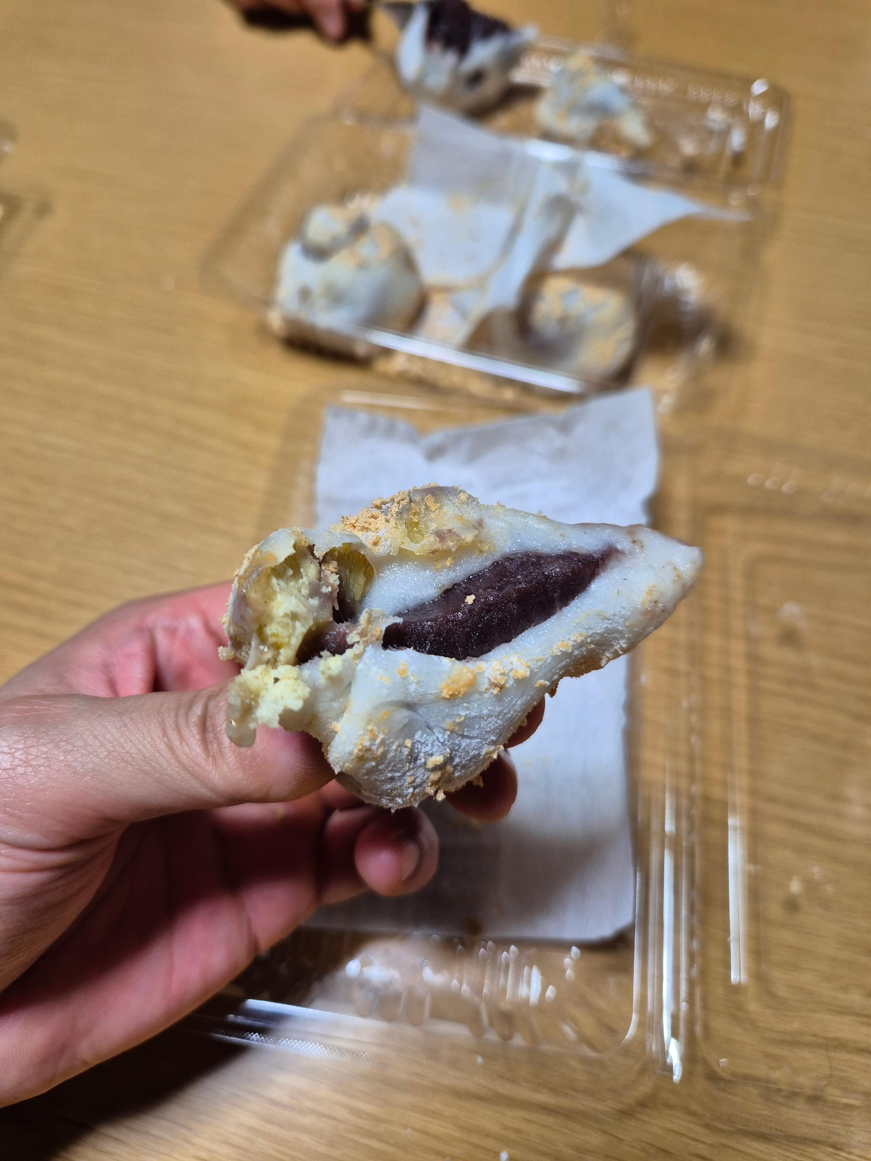 콩떡, 쑥떡, 팥앙금 떡, 고구마앙금 떡 등을 구매해봤다. 사고나서 얼마 안에 먹는게 좋다고 그랬던 것 같음. 찰싹떡이라 부드러움이 핵심이라 그런가보다. 가격은 사실 1도 안 저렴한데 떡 1알에 대략 250~370엔 정도라고 보면 된다.