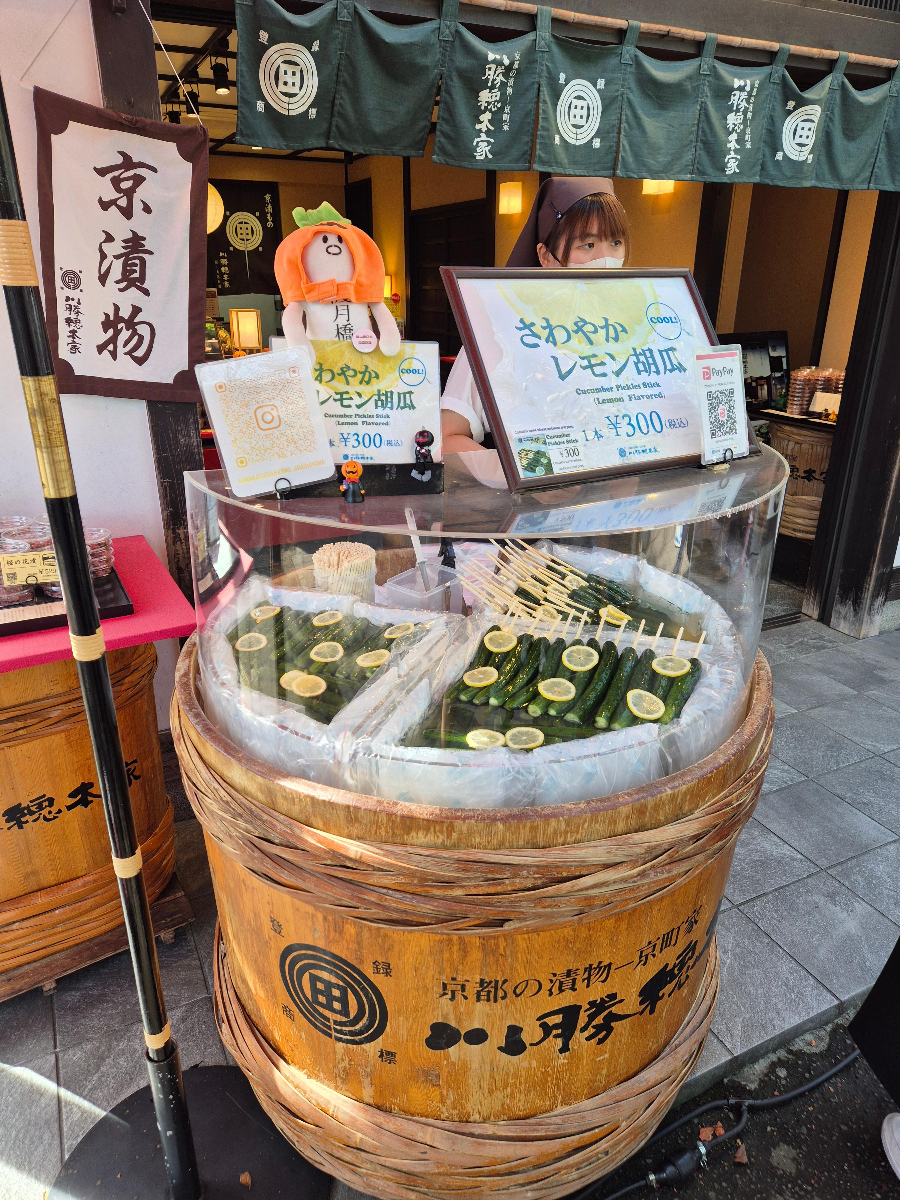 교토의 관광지 근처에 가면 이런 오이 절임을 많이 파는 것을 볼 수 있는데, 날도 덥고 궁금해서 한번 먹어봤다.