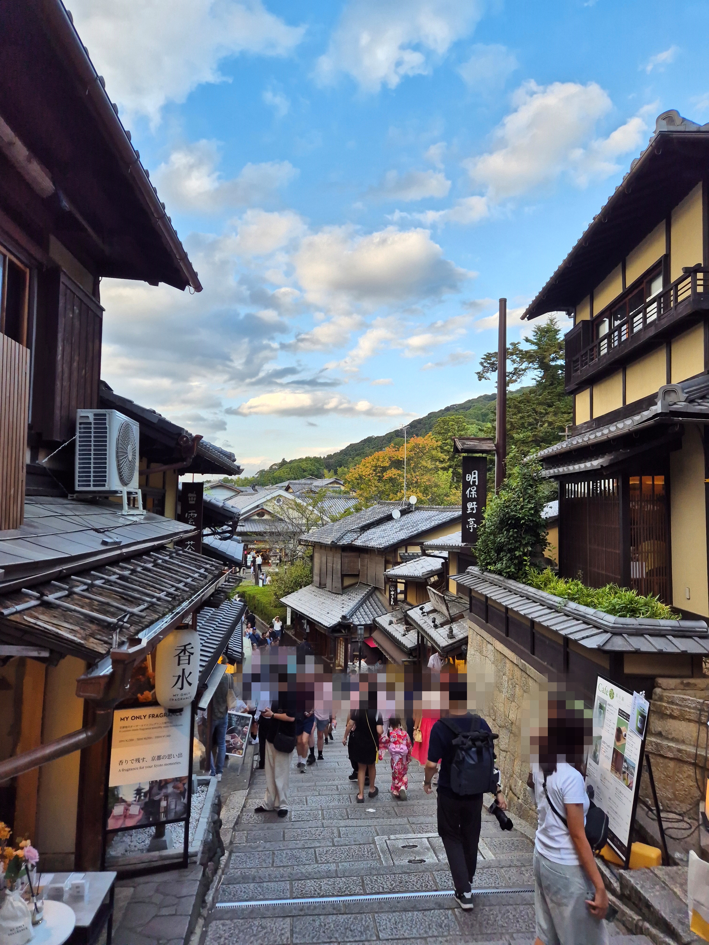 방에서 테라스로 통하는 계단을 올라가면 풍경이 아주 멋있다. 바로 뒤에 기요미즈데라가 보이는데 앉아서 식사하면서 구경하면 딱 일것 같았다. 가격대가 좀 있지만 혹시나 이 숙소에서 머무르고 싶으신 분들을 위해 링크를 남긴다. 그리고 이런 훌륭한 숙소를 본인 실수라 미안하다고 공짜로 제공해주신 사장님께 정말 감사드린다.