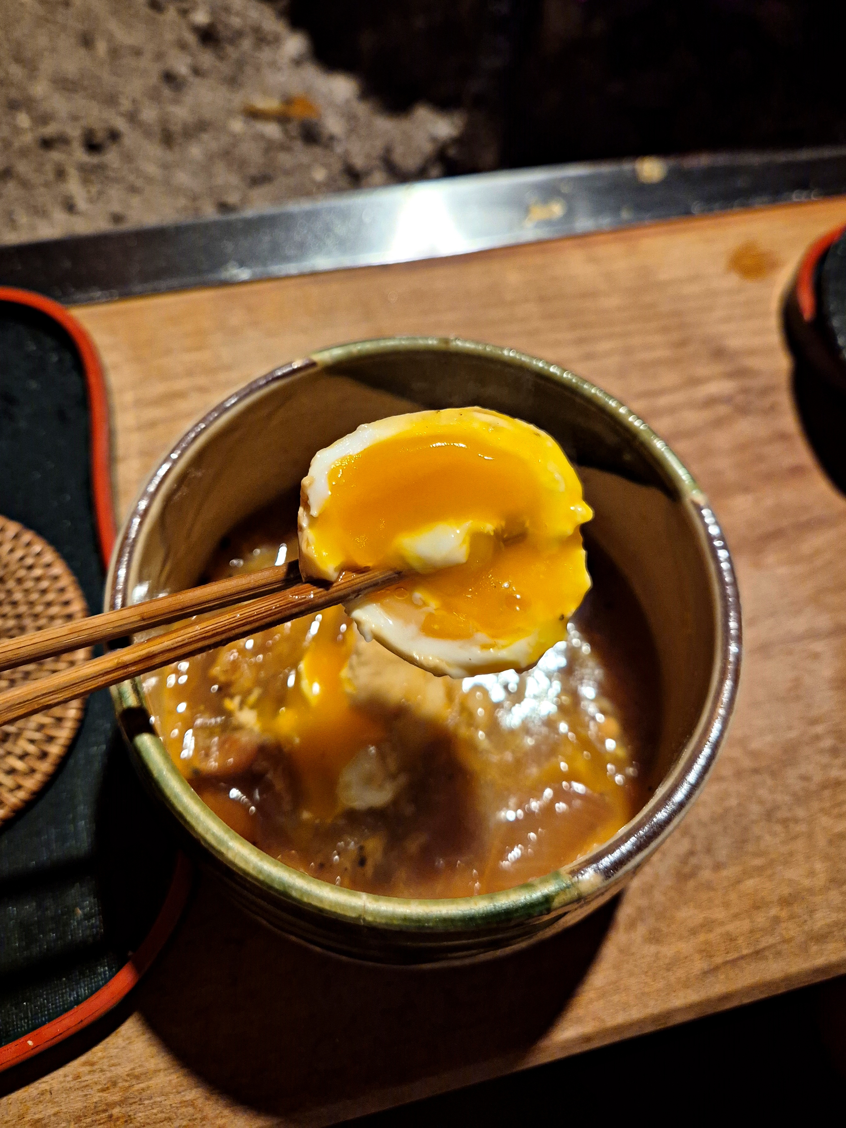 좀 달달한 전골 스타일이라 계란물에 찍어 먹는게 확실히 어울린다. 우리나라의 안동찜닭같은 맛이라고 생각하면 될듯. 내 입맛에는 좀 달아서 많이 먹지는 못했다. 좀 덜 달고 차라리 짠맛 위주로 만들었다면 이전 숯불구이의 묵직함 및 기름진 맛을 잘 씻어줘서 훨씬 맛있게 먹었을 것같다.