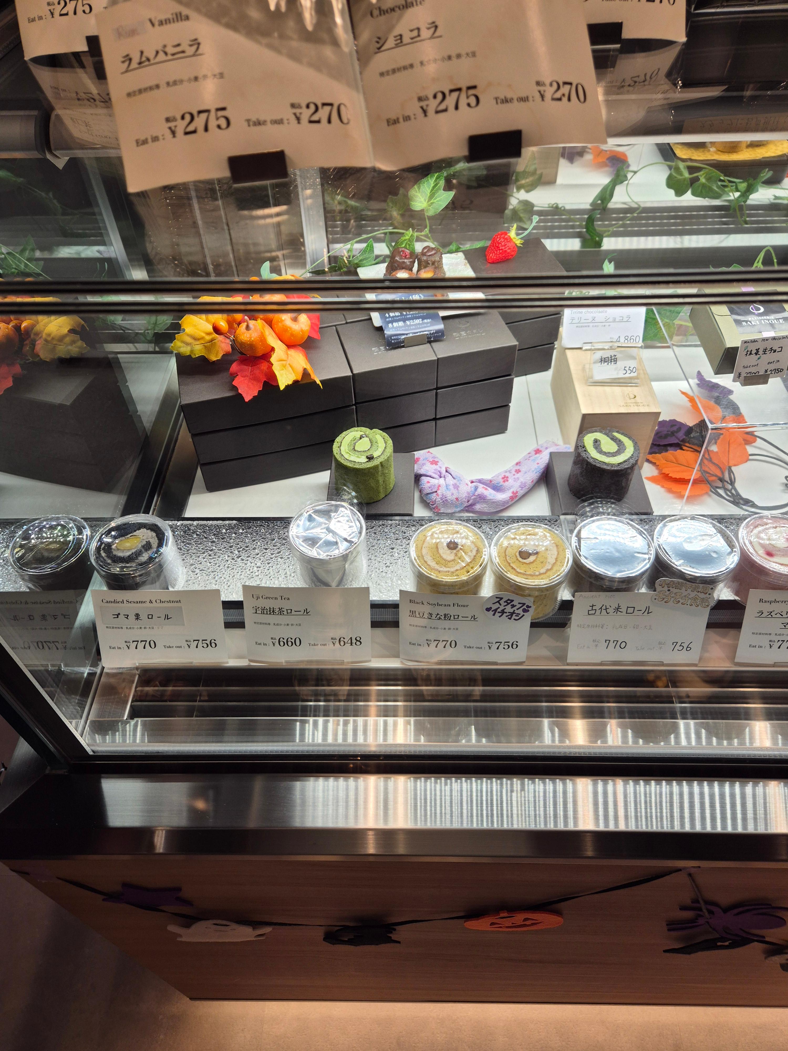약간 이렇게 케이스에 담아놓은 롤케이크가 주력 상품 같았다. 가격은 우리나라와 비슷비슷한듯? 굉장히 늦은 시간인데도 서양인 고객이 꽤 많아서 신기했다.