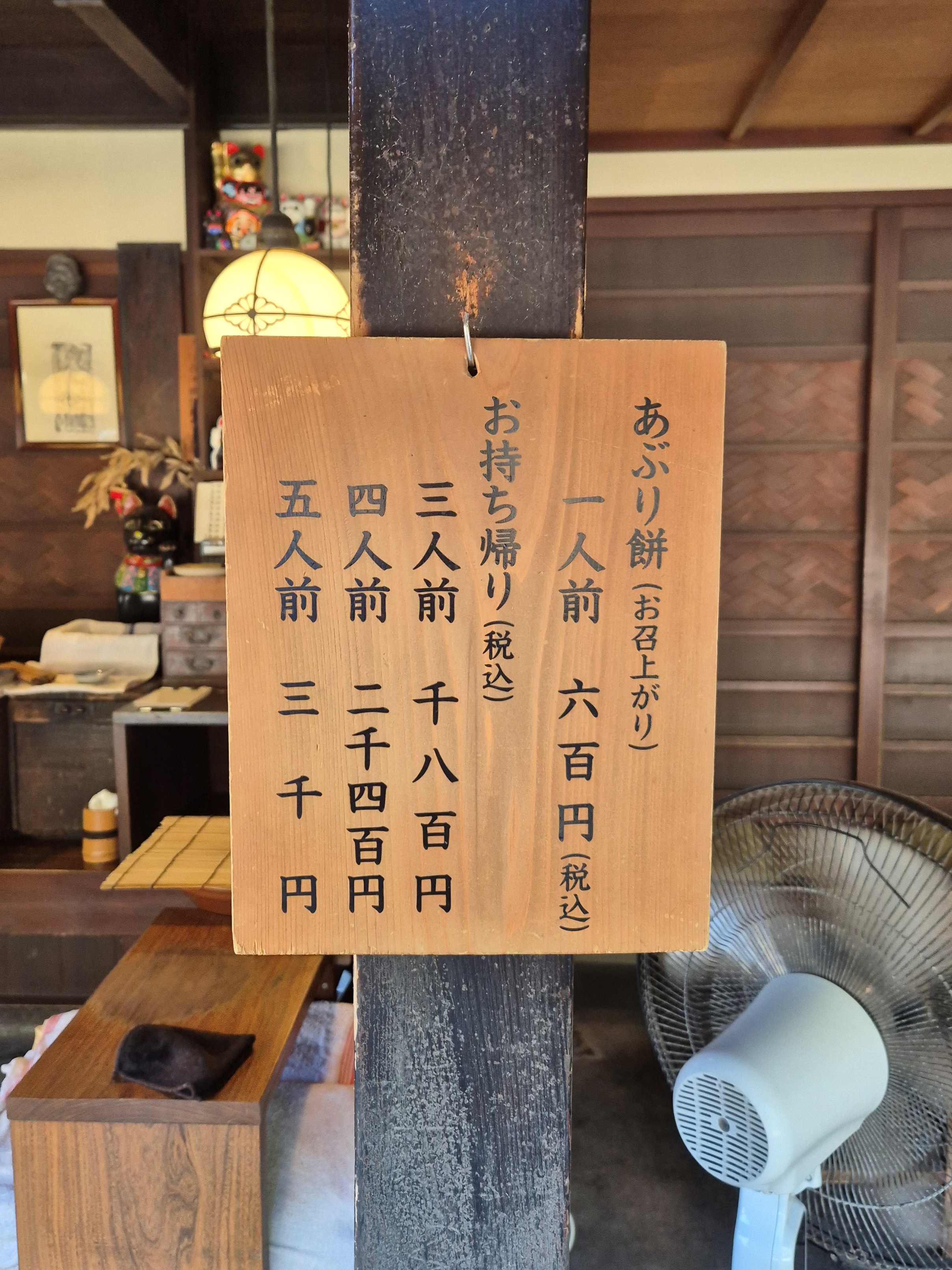 메뉴. 1인분에 600엔이다. 참고로 1인분을 주문하면 말차와 구운떡 10개 정도가 나온다.