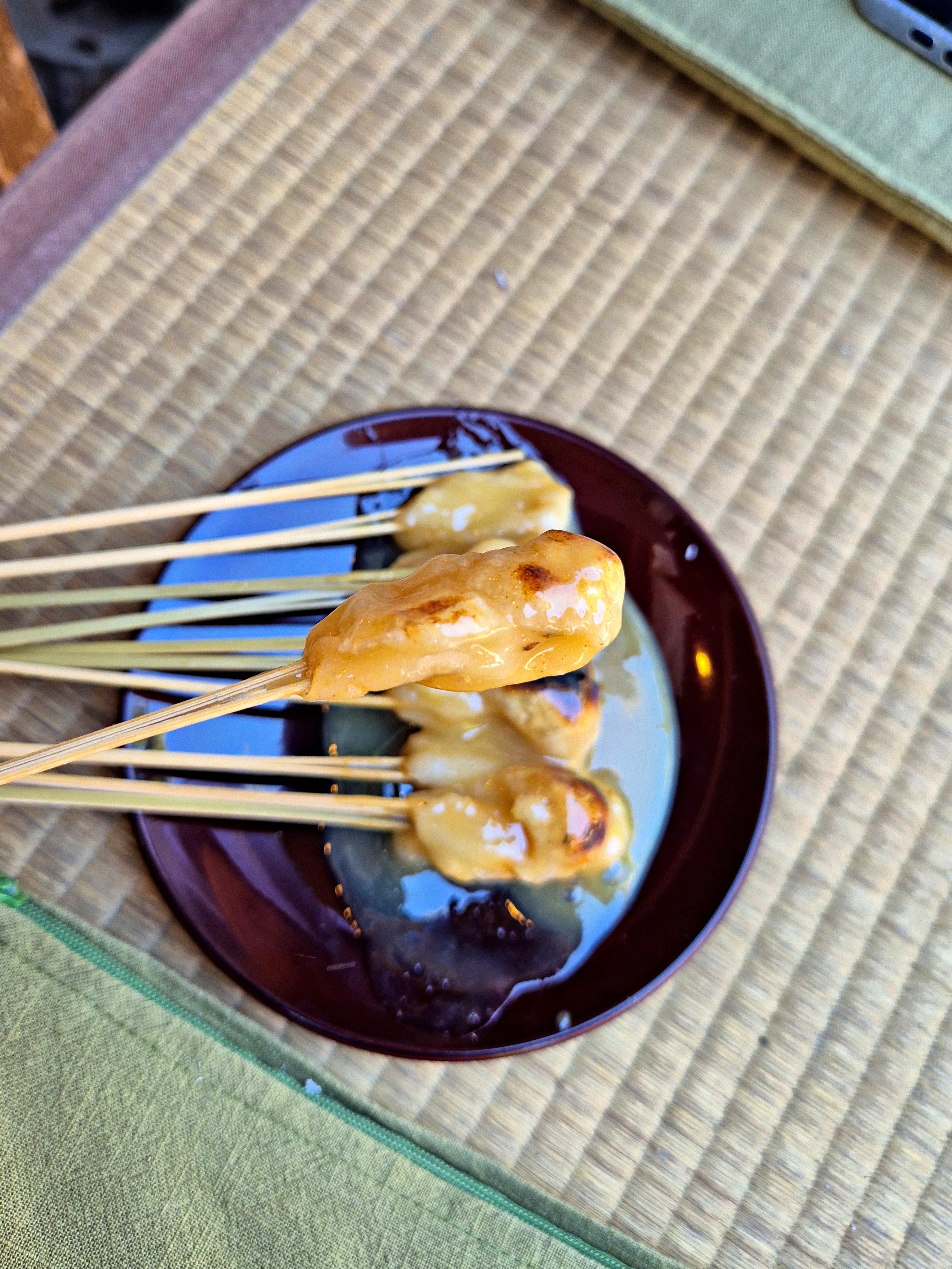 찍어놓고 보니 뭔가 참 교토스러운 느낌의 메뉴다 ㅋㅋㅋ 떡은 뭐랄까 약간 인절미 떡을 구운 듯한 맛이라 우리가 아는 맛이다. 다만 소스가 좀 특이한데, 음 뭐랄까 좀 장류의 향이 나는 달달한 바디감 있는 소스인데 쩅한 묵직한 단맛이다. 절대 산뜻하고 가벼운 단맛이 아니라 무거운 단맛임. 그래서 꼭 녹차로 입가심을 해줘야함.