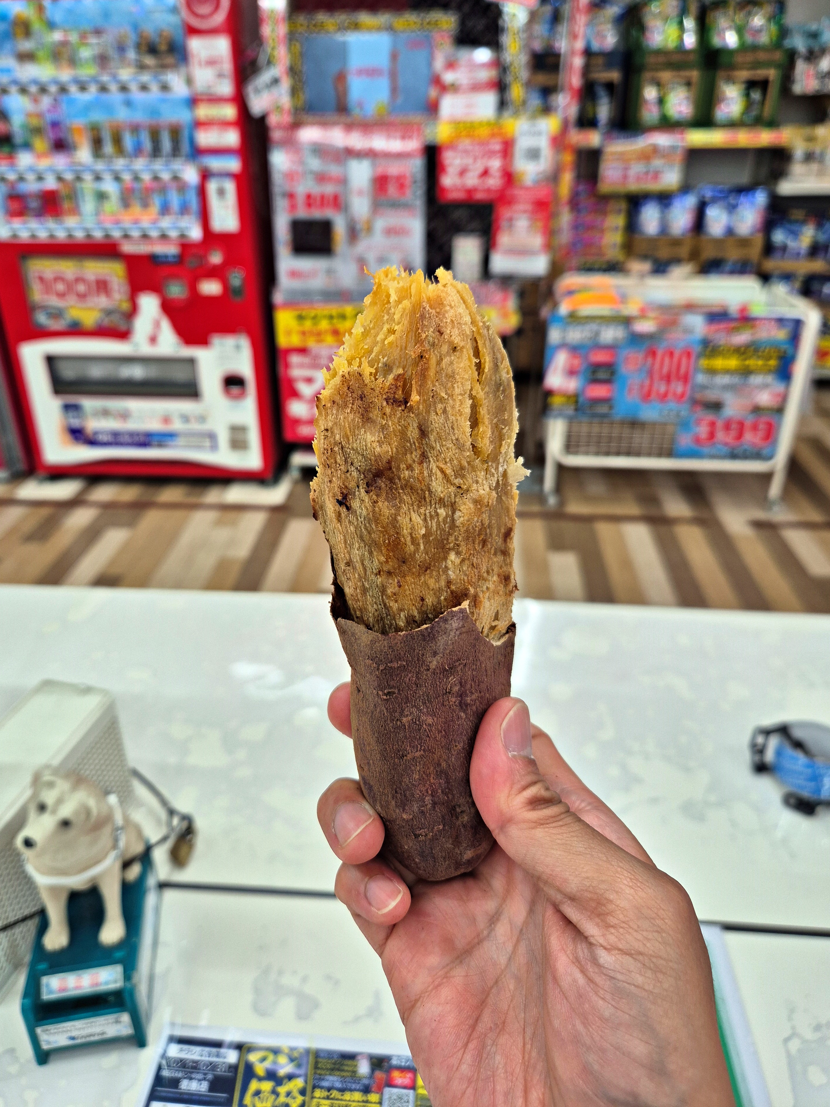 돈키호테는 가보면 많이들 계산대 쪽에서 군고구마를 판매한다. 아마 계산하면서 군고구마 냄새로 유혹하는게 아닐까 싶음. 맛있긴 한데 나는 엄청나게 달 줄 알았는데 예상보다 당도가 그렇게 높지 않았다.