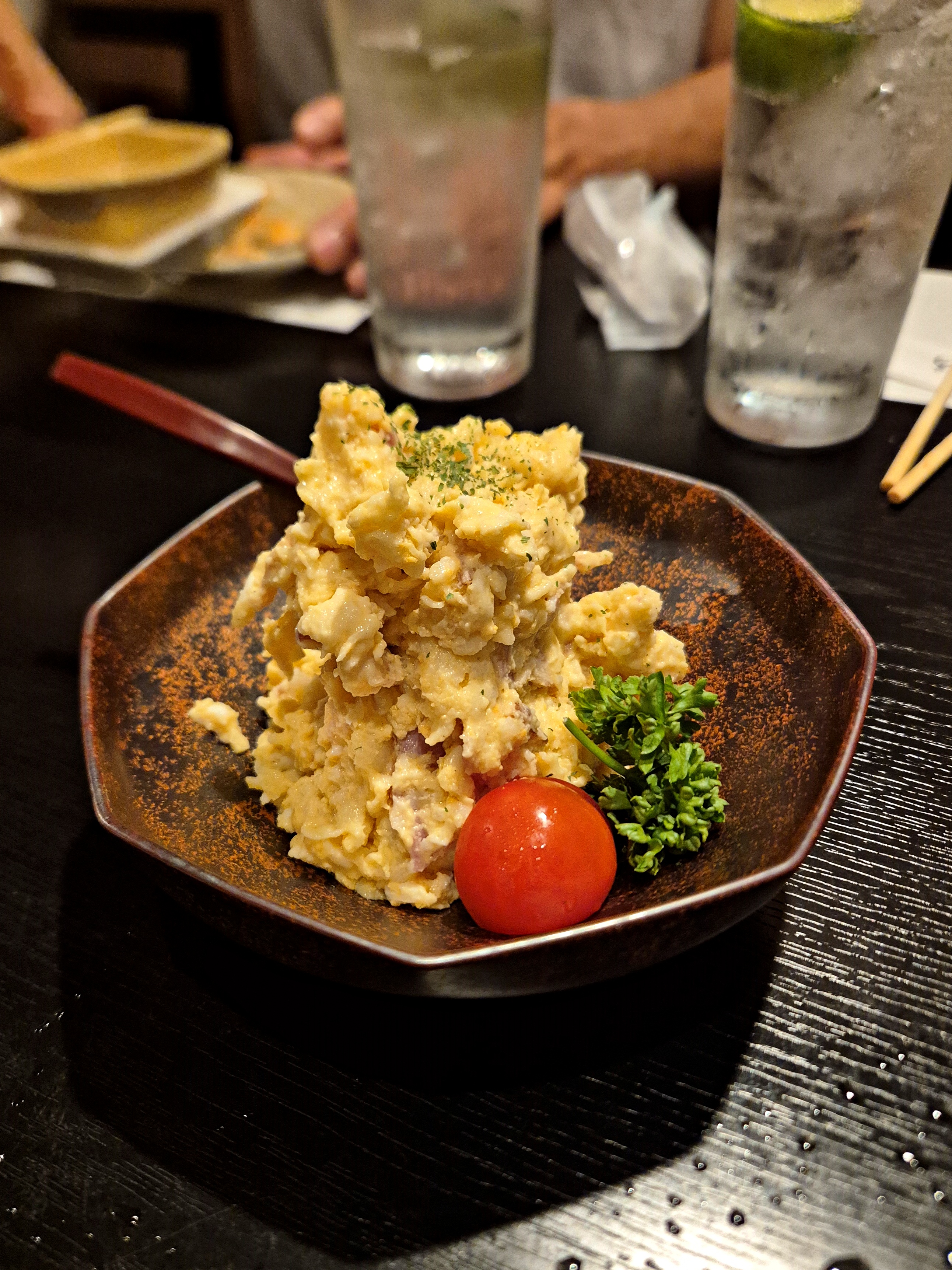 포테이토 사라다. 이것도 일본 이자카야에 오면 엥간하면 주문하는 메뉴다. 가정집 음식과 같이 이자카야마다 제조법이 조금씩 달라서 그 가게만의 포테토 사라다를 먹어보는 재미가 있다. 가성비도 굉장히 좋은 술안주고?