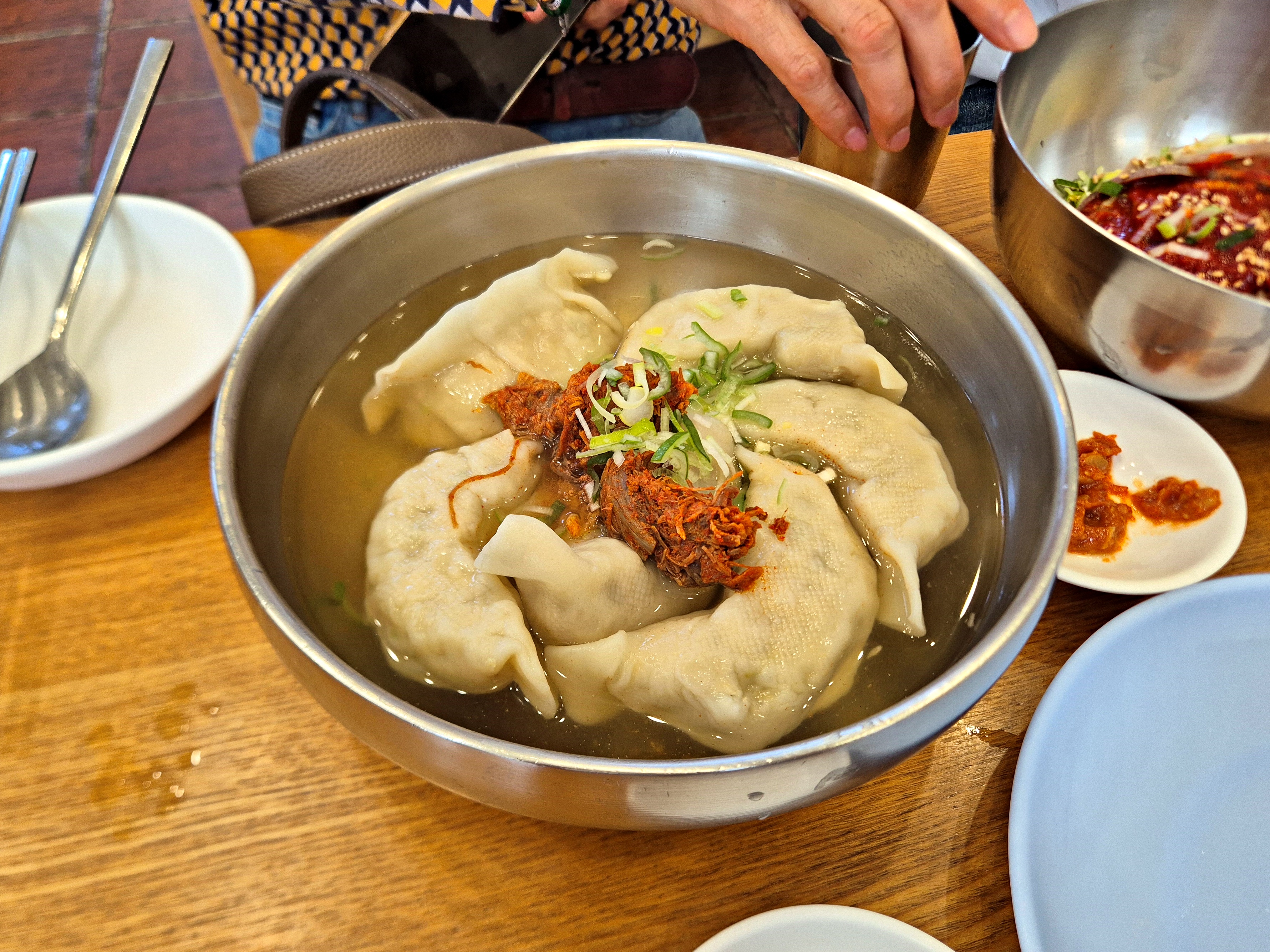 육수가 슴슴한게 아주 맛있었는데 약간 압구정 뉴만두집의 만둣국 스타일과 유사하다. 만두는 뭐 이북식 만두를 표방하는 가게들의 전형적인 만두 스타일. 고기가 많지는 않고 두부, 숙주, 야채들이 많이 들어 있는? 암튼 맛은 괜찮았음.