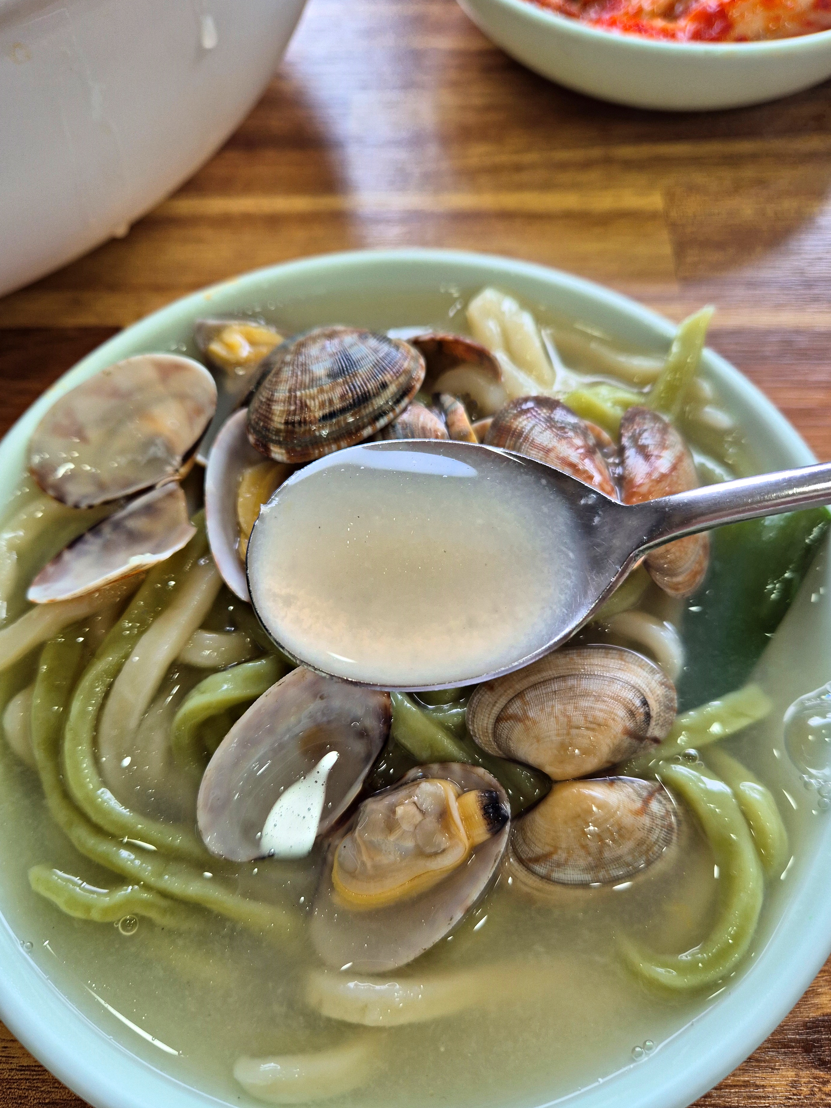 이집은 이 김치 맛집이다. 가게 내부에 김치를 구매할 수 있다고 기재되어 있어서 얼마나 맛있길래 굳이 칼국수용 김치를 사가나 싶었는데 먹어보고 이해가 됐음. 전형적인 달고 짭조름한 익지 않은 칼국수 김치 맛이긴한데 뭔가 탁탁 쳐주는 감칠맛이 있달까? 표현력이 좋지 않아서 뭐라고 표현해야 할지 모르겠지만 뭔가 그 킥 같은 느낌이 있다.