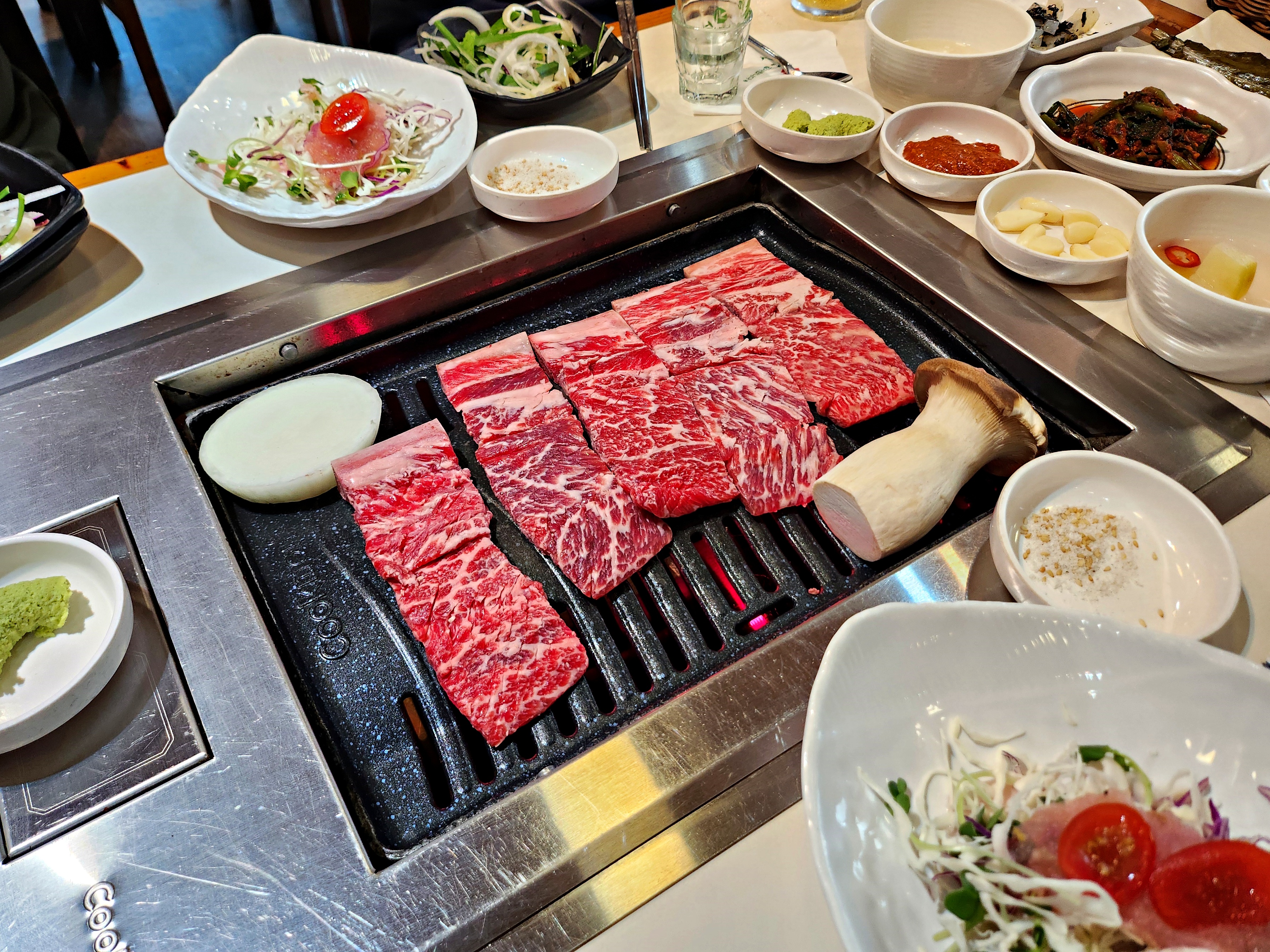근데 개인적으로 미국산 갈비는 정말 괜찮은 고기가 아니라면 구이용으로는 솔직히 좋았던 기억이 별로없다. 이집 갈비도 흔한 미국산 갈비들 처럼 육향은 강한 편이라 내가 좋아하는 스타일이긴 하지만 구이용으로 먹기엔 좀 질기달까? 숙성이 필수적이지 않을까 생각이 든다.