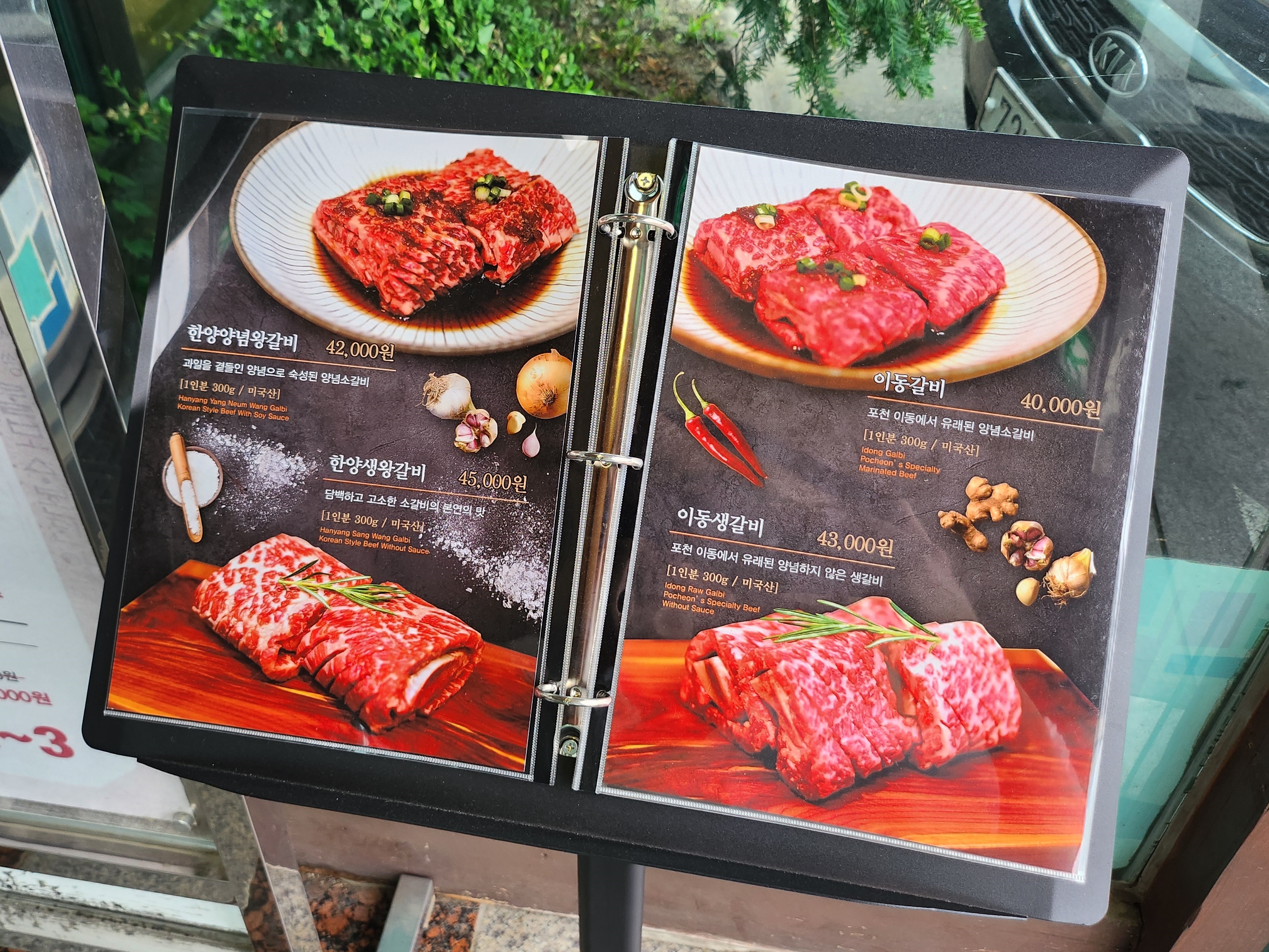 메뉴. 이동갈비의 고장인 포천이래서 당연히 한우 갈비를 팔 줄 알았는데 미국산이래서 좀 당황하긴 했다.