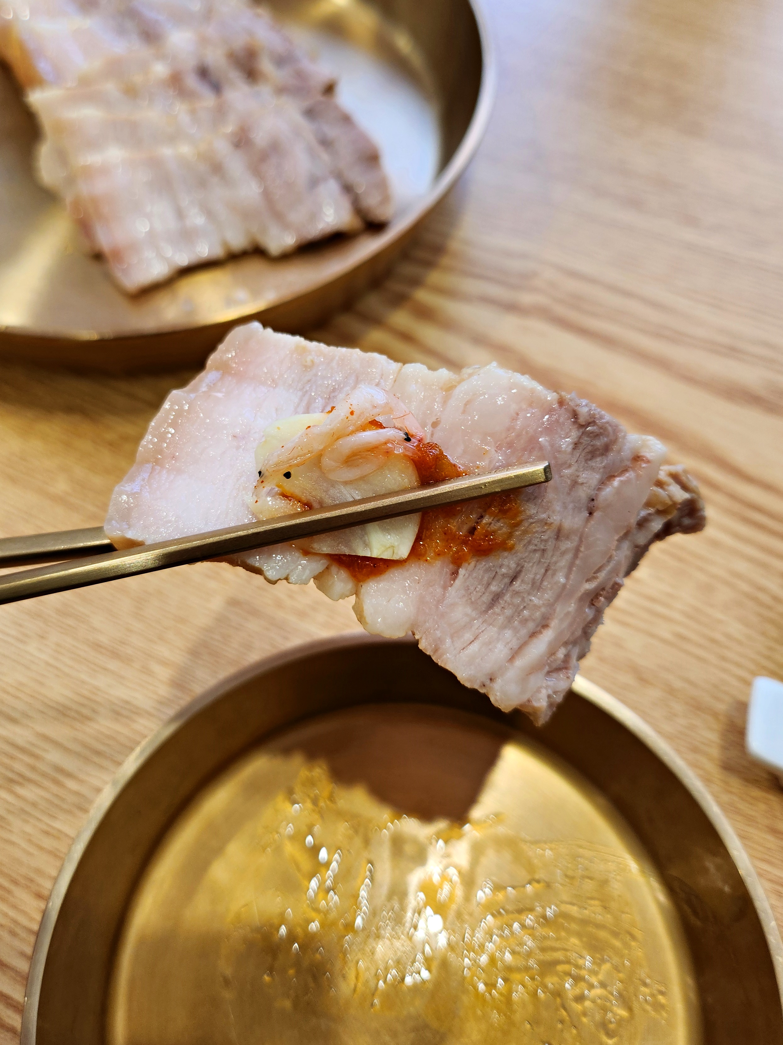 개인적으로 참 맛있었던 삼겹 수육이었다. 부드러우면서도 쫀쫀하고 온도감도 적정하고. 육향도 적당한데 지방풍미 마저도 훌륭했다. 최근에 먹은 삼겹살 수육중에 손에 꼽혔음. 이 수육을 먹는 순간 이 집에 대한 기대감이 강해졌다.
