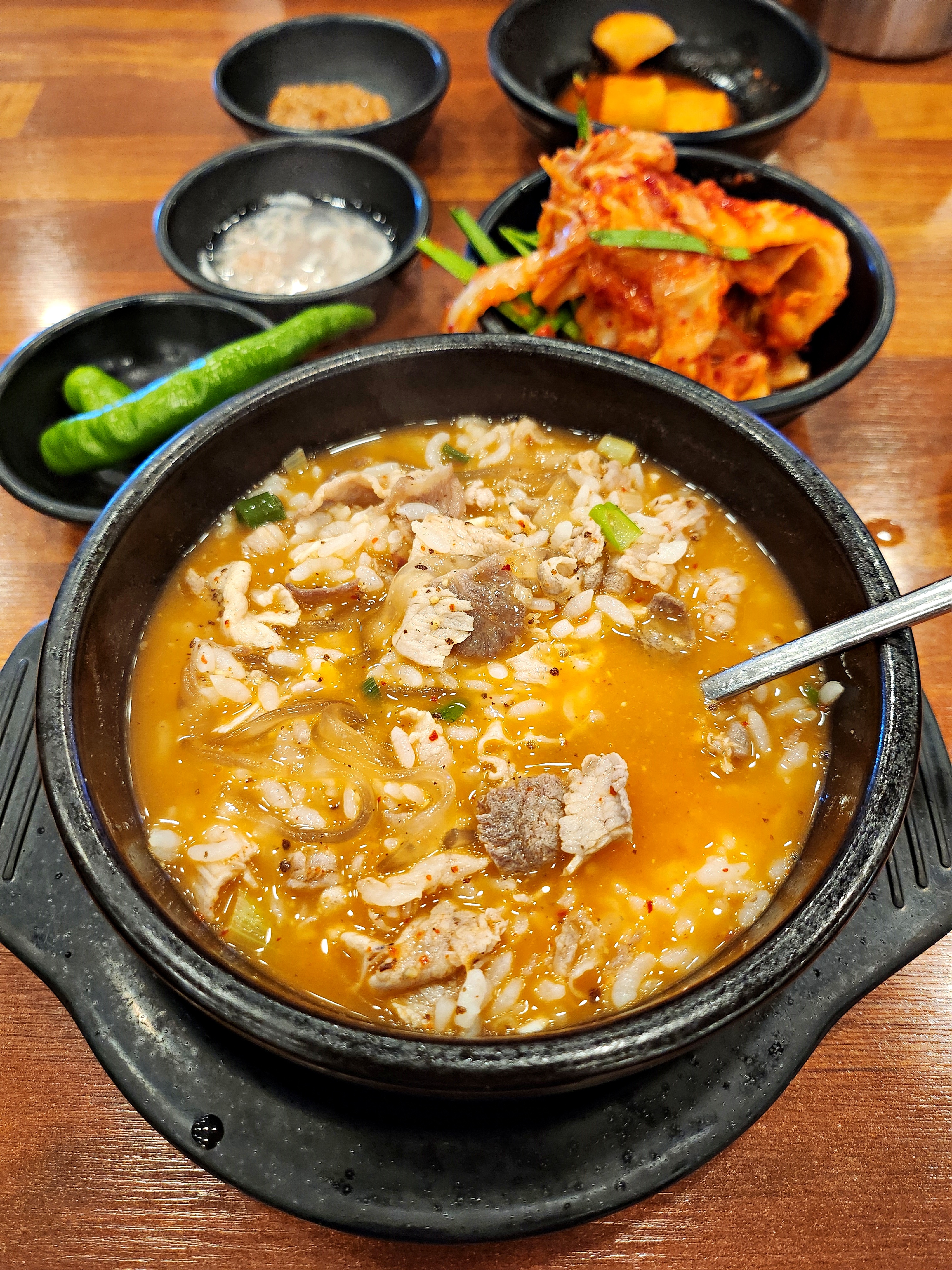 특이하게 이렇게 얇은 고기를 넣어주는 고기국밥인데 가볍게 먹기에는 좋은 것 같기도 함.
