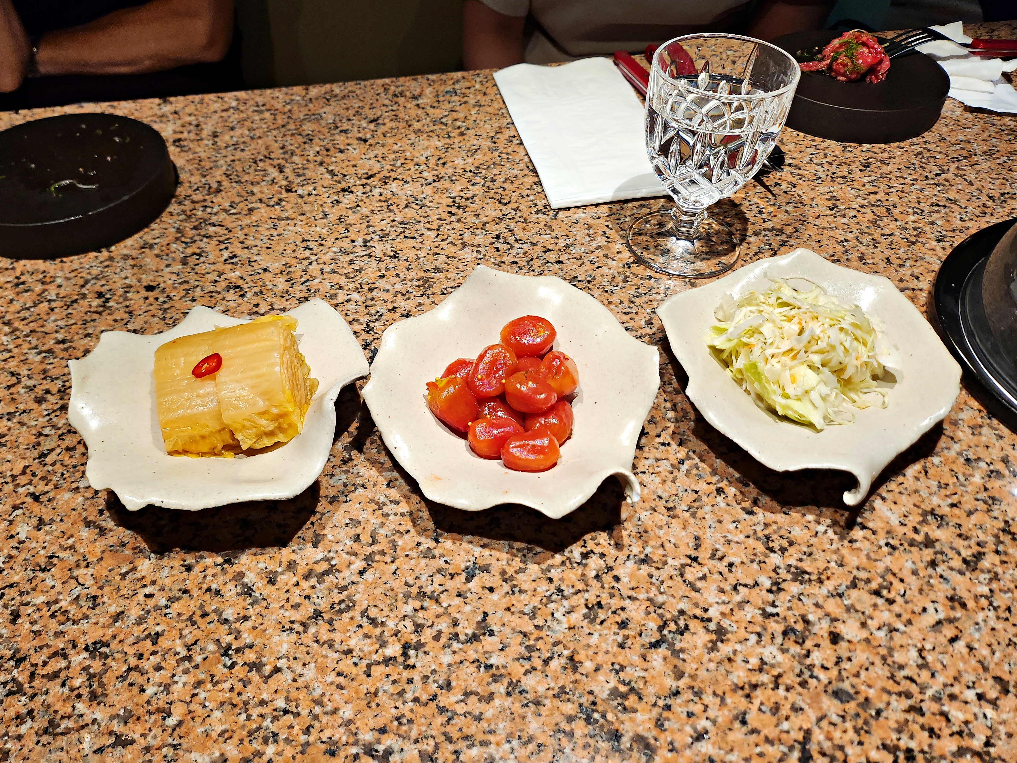 한국식 고기집 답게 야키니쿠에도 이렇게 귀여운 장독에 동치미를 주는데 센스가 있는 구성이었다. 동치미가 클레저 역할을 하면서 한우 구이의 느끼함을 싹 씻어줌.
