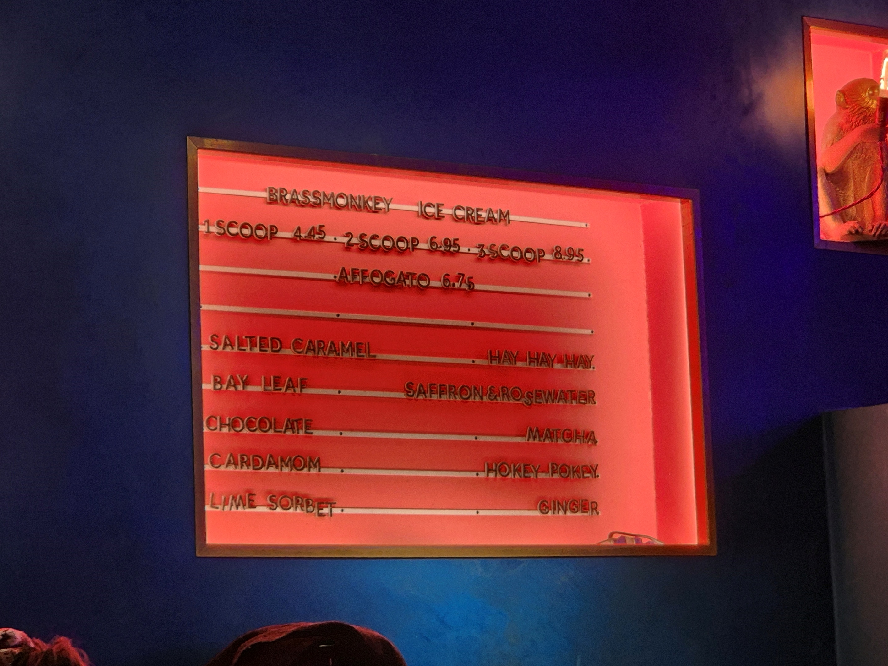 느끼한 고기를 먹었으니 입가심을 위해 디저트집을 찾았다. 이근방에서 구글리뷰가 좀 많았던 아이스크림 집이었는데 늦은 시각임에도 사람들이 엄청나게 많았음. 브라스 몽키 아이스크림(Brass Monkey Ice Cream)이라는 가게다.