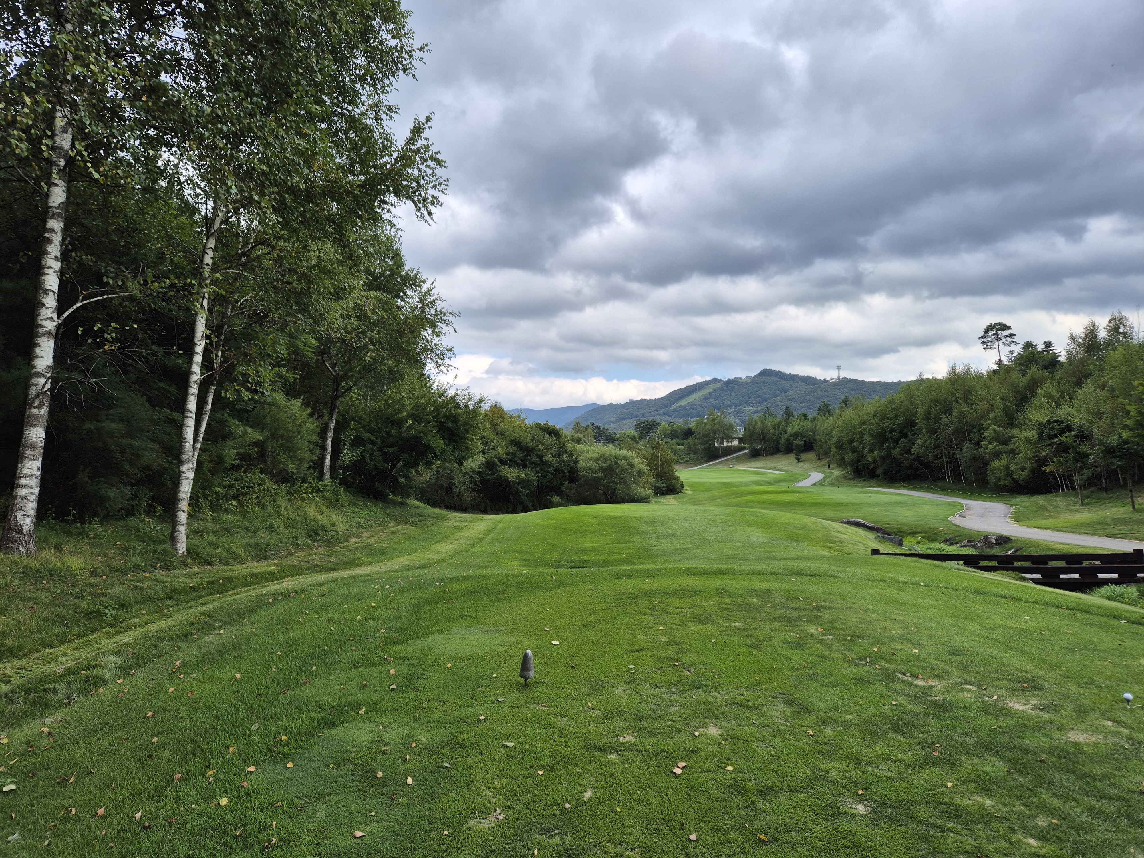 메도우 코스 1번홀. 330m 정도의 파4홀이다. 알펜시아 cc는 은근히 오비가 꽤 있어서 티샷을 주의해야한다.