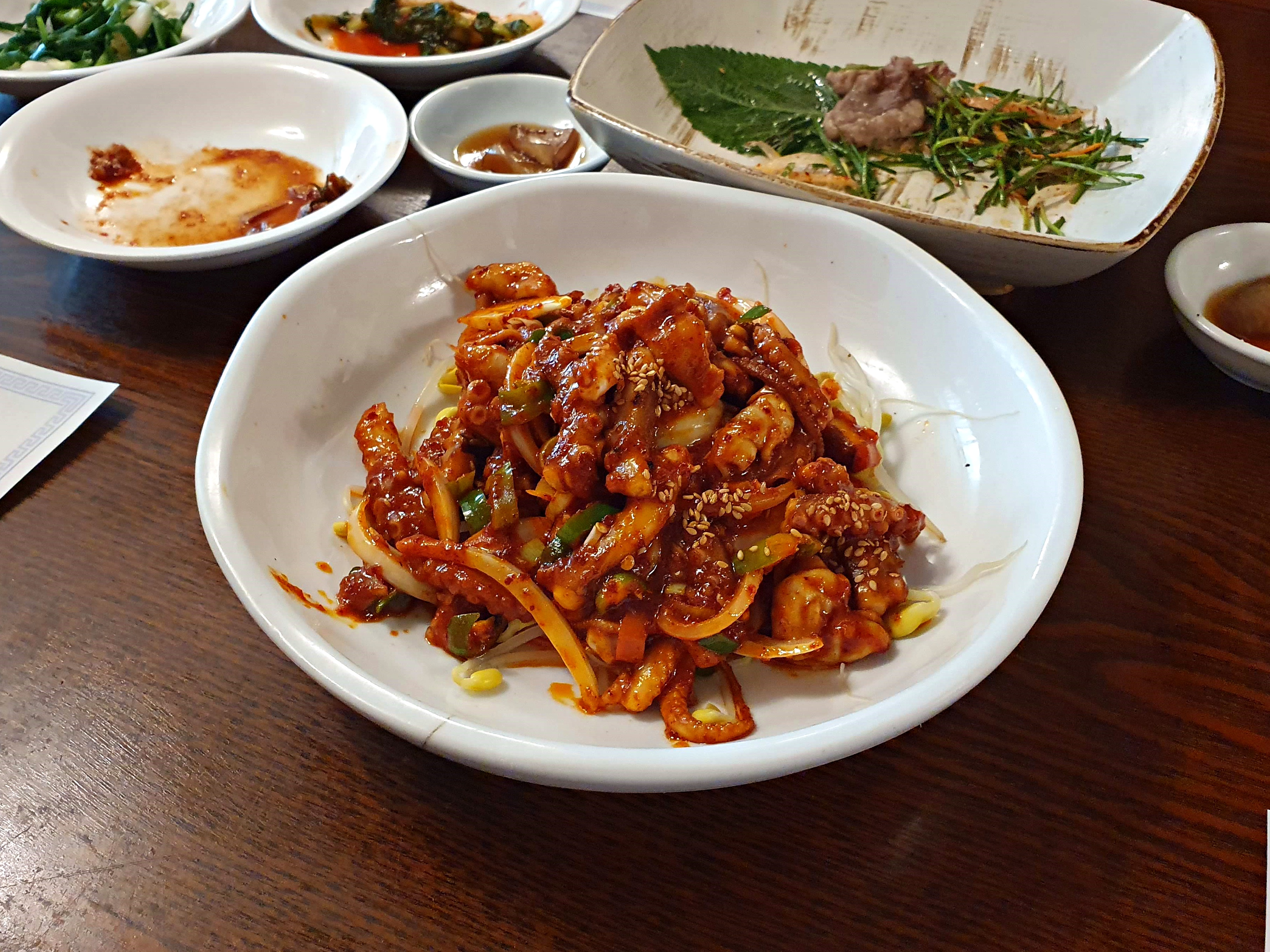 낙지볶음. 매콤한데 맛이 괜찮았음. 전반적으로 음식이 자극적이지 않고 정갈한 편이다.